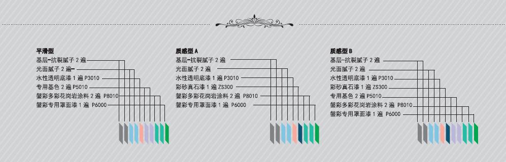 鎜彩花崗岩體系,分爲五層(céng):膩子層(céng),百氏高封閉(bì)底漆,百氏高高彈中塗層(céng),百氏高·鎜彩花崗岩、鎜彩花崗岩專用罩光漆 ![]() 批刮膩子 ◆掌握好刮塗時的傾斜度,用力均勻,以保證膩子飽(bǎo)滿(mǎn)。 ◆爲避免膩子收縮過(guò)大,出現開列和脫落,一次刮不要過(guò)厚,根據不同膩子的特點(diǎn),厚度以0.5—1.0mm爲宜。 ◆不要過多的往返刮塗,以免出現卷落或将膩子中的膠料及處(chù)封住表面不易幹(gàn)燥。 ◆據塗料的性能及基層(céng)狀況選擇适當的膩子及刮塗工具。用油灰刀填補(bǔ)基層(céng)孔洞和裂縫時,食指壓緊刀片,用力将膩子壓進缺陷内,要填滿、填實,将四周的膩子收刮幹淨,使膩子的痕迹盡量減少。 ◆打磨必須在基層(céng)或膩子幹(gàn)燥後進行,以免粘附砂紙影響操作。 ◆砂紙的粗細要根據被磨表面的硬度來定,砂紙粗瞭(le)會産生砂痕,影響塗層(céng)的最終裝飾效果。 ◆打磨後(hòu)應清除表面的灰層(céng),以利下道工序的進行。 ◆手工打磨應将砂紙(布)包在打磨墊上,往複用力推動墊塊,不能隻用一兩個手指壓著(zhe)砂紙打磨,以免影響打磨的平整度。機械打磨常用電動打磨機,将砂紙夾於(yú)打磨機上,輕輕在基層面上推動,嚴禁用力按壓以免電機過載受損。 ◆檢查基層(céng)的平整度,在側(cè)面光照下無明顯凹凸和批刮痕迹,無粗燥感覺、表面光滑爲合适。 分格縫 依據設計要求對牆面進行分格,專用工具切割,用專用材料進行填充,做出圓滑效果。保溫基面施工時爲保證保溫層(céng)的完整性,不進行切割,分格縫依據設計要求标定後用紙膠帶(dài)進行保護施工。 滾塗百氏高封固底漆 底漆封閉(bì)牆面堿性,提高面漆附著(zhe)力,對面塗性能及表面效果有較大影響,如果不是用底漆,附著(zhe)力會有所削減,牆面堿性對面漆性能的影響更大,可能造成漆膜粉化、泛黃、滲堿等問題,破壞面漆性能,影響漆膜的使用壽命。底漆滾塗時不需加水稀釋,均勻、無遺漏即可。 塗刷百氏高鎜彩專用基色 待底漆幹(gàn)燥後,塗刷1-2遍鎜彩專用基色,蓋(gài)住底色即可。 描縫 根據設計分格縫顔色,對(duì)分格縫進行塗刷顔色,用美文紙膠帶(dài)進行保護。 噴塗百氏高·鎜彩花崗岩塗料 ■使用工具:①噴(pēn)槍 ②空壓機(jī) ■噴塗百氏高·鎜彩花崗岩塗料前,高彈中塗層(céng)要充分幹燥,施工氣溫必須在5℃以上,噴塗百氏高·鎜彩花崗岩塗料時,一般分兩遍噴塗。第一遍約2小時表幹後再噴第二遍,以達到滿意效果。塗布量會因塗裝效果、氣候、基面狀況、施工方法不同而有所差異。較長時間靜止存放的産(chǎn)品在開蓋使用前可輕微攪動,不許機械攪拌,無需加水稀釋。 噴塗鎜彩花崗岩專用罩光漆 待鎜彩花崗(gǎng)岩塗料完全幹(gàn)透後,方可噴塗罩光清漆,罩光漆要噴塗要均勻且全面,不可有漏噴等現象。 |