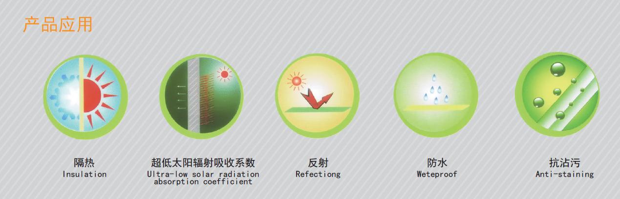 産品優勢 ◆工藝簡(jiǎn)便、施工費(fèi)用低 施工工藝簡便,施工費用低,想當(dāng)於(yú)普通建築料的施工。 ◆工期短.将建築節(jié)能和塗(tú)料施工台二爲一 将建築節(jié)能工程和建築外牆(qiáng)飾面工程合二爲一,有效縮短建築施工工期。 ◆安全不增加承重、結(jié)合牢固、耐候性好耐洗刷性強(qiáng) 塗層(céng)的厚度僅爲 0.45mm左右,使用在建築物牆體上不會增加建築的承重。塗層(céng)與牆體結合牢固,候性好、耐洗刷性強使用壽命可過(guò)十年以上。 ◆應用範圍廣泛 建築用反射隔熱塗孝鬥可廣泛應用於(yú)建築物混凝土表面、金屬表面、異型設備(bèi)等的隔熱保溫。 ◆防火不然、防塵自潔、無毒環保 水性塗料防火不燃、防塵自潔、超低 VOC無毒環保。 ◆既有建築改造,隻需按普通外牆(qiáng)塗料施工工藝進(jìn)行施工即可 針對(duì)既有建築改造,無需對(duì)舊房原有的狀态及水管、電(diàn)線線管等進行改建,僅需按普通建築外牆塗料 的施工工藝進行施工即可。 ◆色彩亮麗(lì)、漆膜緻密、外牆(qiáng)塗料優等品指标 可調(diào)色,且色彩亮麗(lì)、漆膜緻密,塗料理化性能符合GB/T9755-2001水性合成樹脂乳液外牆塗料優等品性能指标 注意事項 使用前應先閱讀使用說明書,以獲得可靠和滿意的塗裝效果。必須存放於(yú)陰涼幹爽的地方,嚴防霜凍(不低於(yú)零攝氏度 ),保質期爲12個月。本品爲水性塗料,不得與各類溶劑型材料同時施工。施工時應配戴面罩。如沾上眼睛,應及時用清水沖洗。施工後應立即用自來水沖洗工具。用後罐蓋應蓋緊密封保存,以防塗料沾 染灰塵和污垢。 産(chǎn)品應用 建築用反射隔熱塗料是指以合成樹脂爲基料,與功能性顔填料及助劑等配料而成,施塗於(yú)建築物表面,具有較高太陽光反射比(反射的和入射的太陽輻射能通量之比值)和較高半球發射率(實際物體發射到半 期空進的輻射通理與入射在物體表面上的輻射通量之比)塗料。 建築用反射隔熱塗料是指以合成樹脂爲基料,與功能性顔填料及助劑等配料而成,施塗於(yú)建築物表面,具有較高太陽光反射比(反射的和入射的太陽輻射能通量之比值)和較高半球發(fā)射率(實際物體發(fā)射到半 期空進的輻射通理與入射在物體表面上的輻射通量之比)塗料。